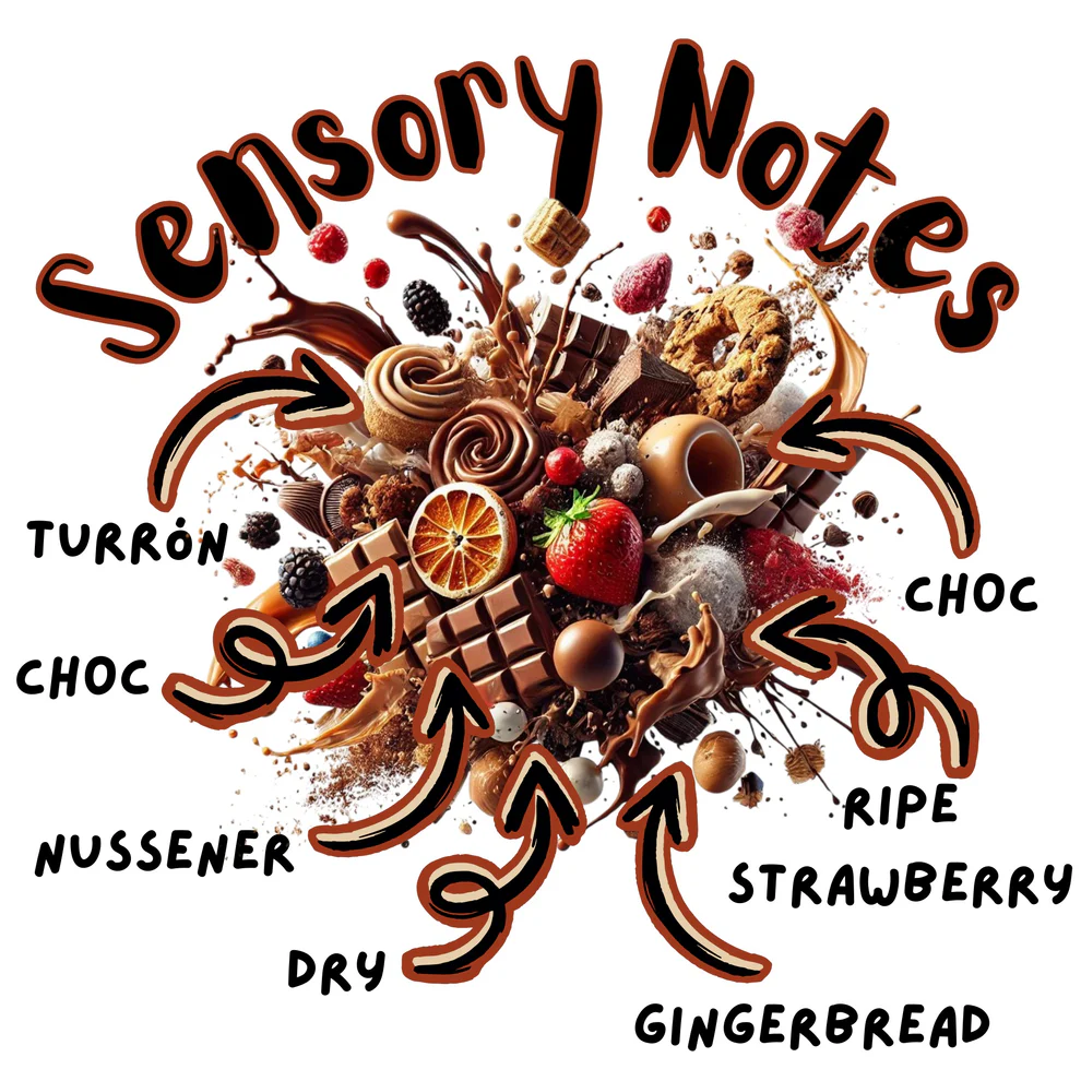 Turrón (mandulás nugát) • Csokoládé • Diófélék • Karamell • Érett eper • Mézeskalács • Száraz lecsengés