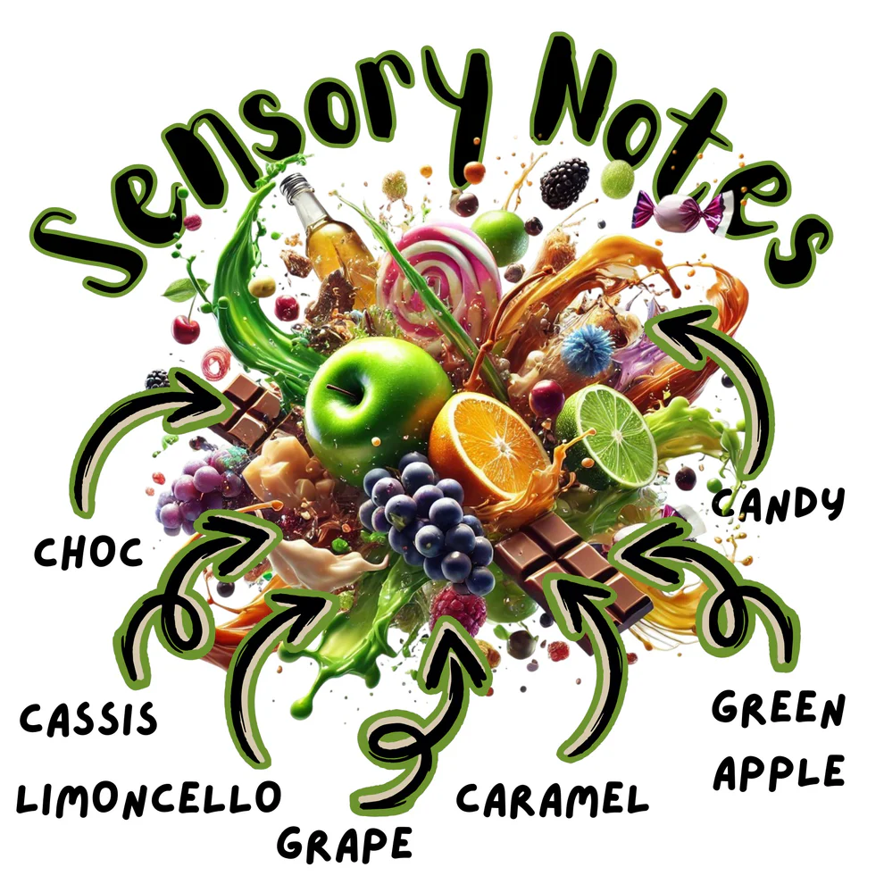 Zöld alma • Cukorka • Karamell • Szőlő • Feketeribizli • Limoncello • Csokoládé
